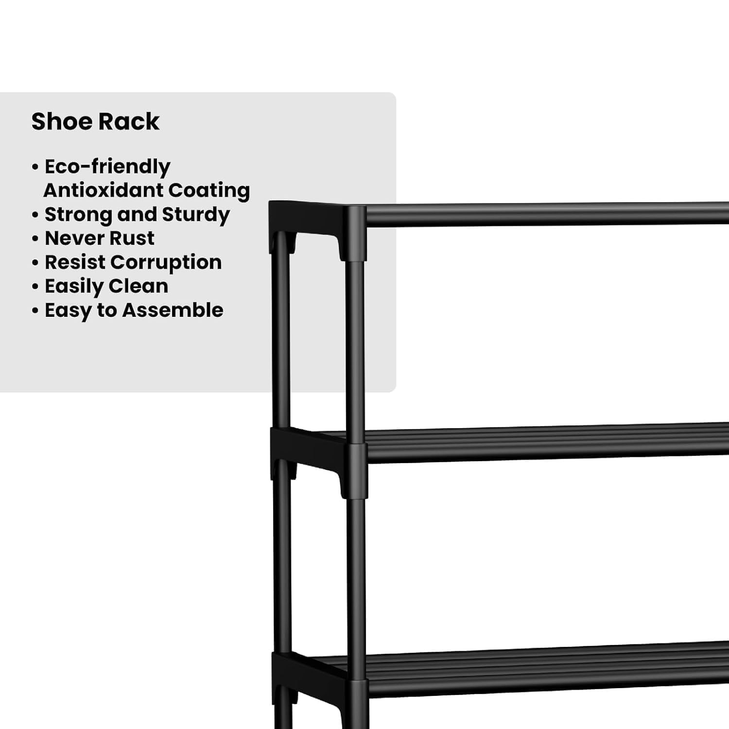 - [Durable & Spacious Design] – Strong metal frame with high-quality plastic connectors makes this shoe rack long-lasting and capable of holding multiple pairs of shoes.