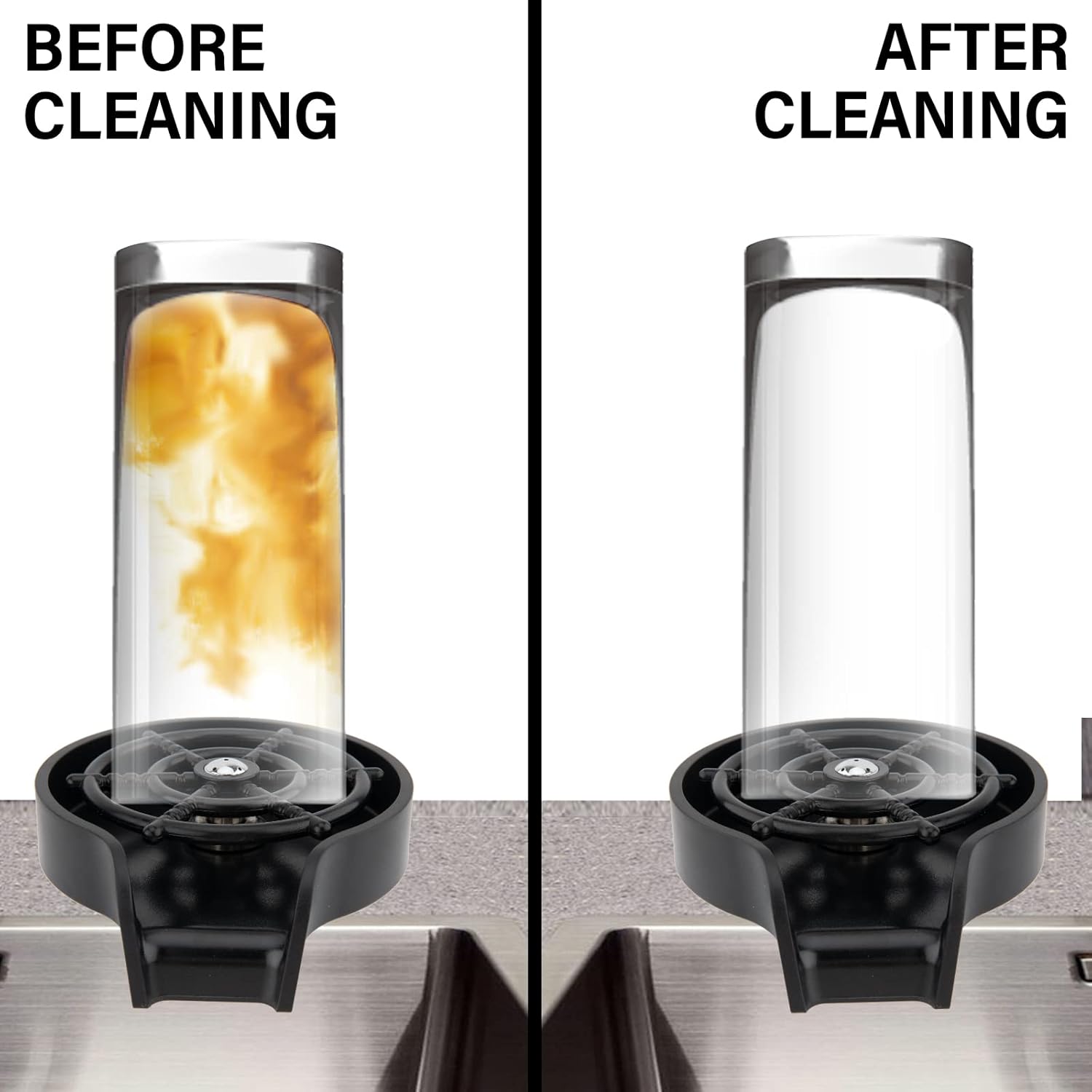 - ★【Quick Cleaning Bar Rinser】The powerful water flow of the glass cup washer can thoroughly rinse the residue in a few seconds, making your cup as bright as new.
