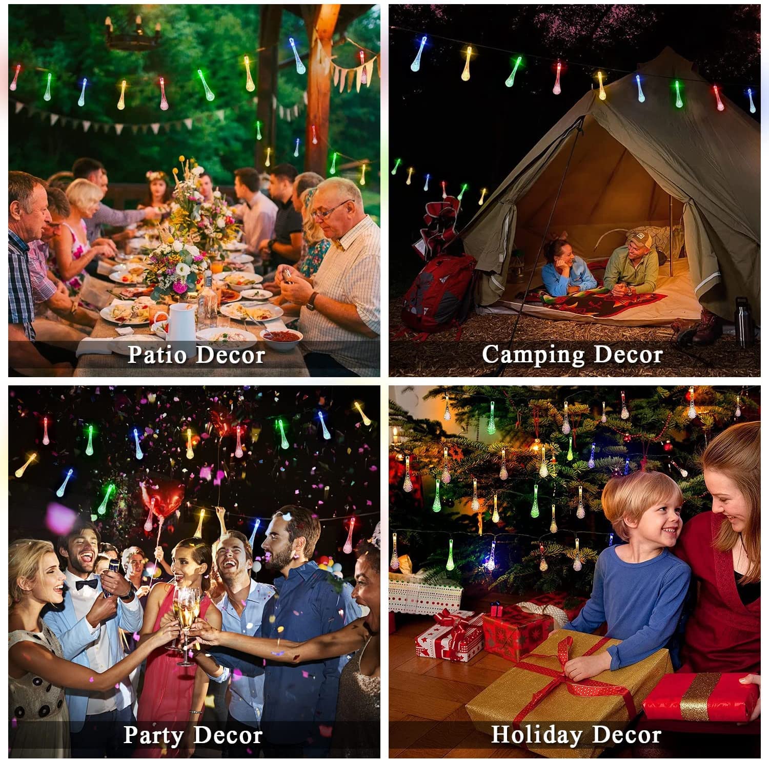 - .Perfect Waterdrop String Warm White lights for home decor – this high-brightness Multicolour 14 LED lights with romantic and cute Waterdrop string Multicolour design can bring you unexpected beauty. 360 degree lighting angle, makes it look wonderful at night. Perfect for indoor and outdoor, fairy lights, Christmas decoration, holiday, party, Diwali, wedding, decor lights, home, bedroom, window, walls, doors, trees, balcony, living room decorations.