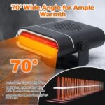 - 360° Adjustable: The heater for car 12 volt features a dual-axis 360° rotation and 60° wide-angle heating, offering optimal coverage. As a portable car heater, it provides flexibility in positioning, ensuring efficient heat distribution in your vehicle.
