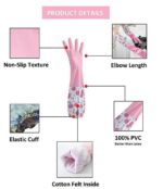 - Easy to take off and wear: Made of rubber, with long cuffs and flocking lining and keeping the between gloves and hands, these gloves are very comfortable to wear and leave hands feeling fresh and clean even prolonged use.