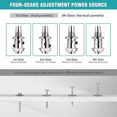 - 4.Gear Adjusted:-concrete nailer gun adjusted by removing screws and according to different construction intensity requirements; Gear 1 can penetrate 3 mm steel plates; gear 2 can use in DIY ceilings, mounting brackets, door and window monitoring etc