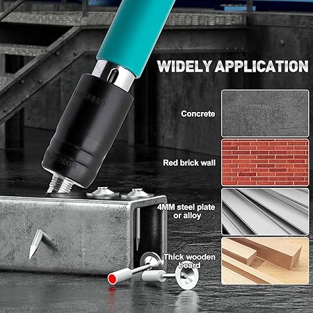 - 1. Steel nail gun only 0.1S can penetrate 3 mm steel plate for nailing, strong penetration, this nail gun is suitable for nail length: 25 mm nails. Can be built: red brick wall / concrete / 3 mm steel plate / thick plate can be made as desired.