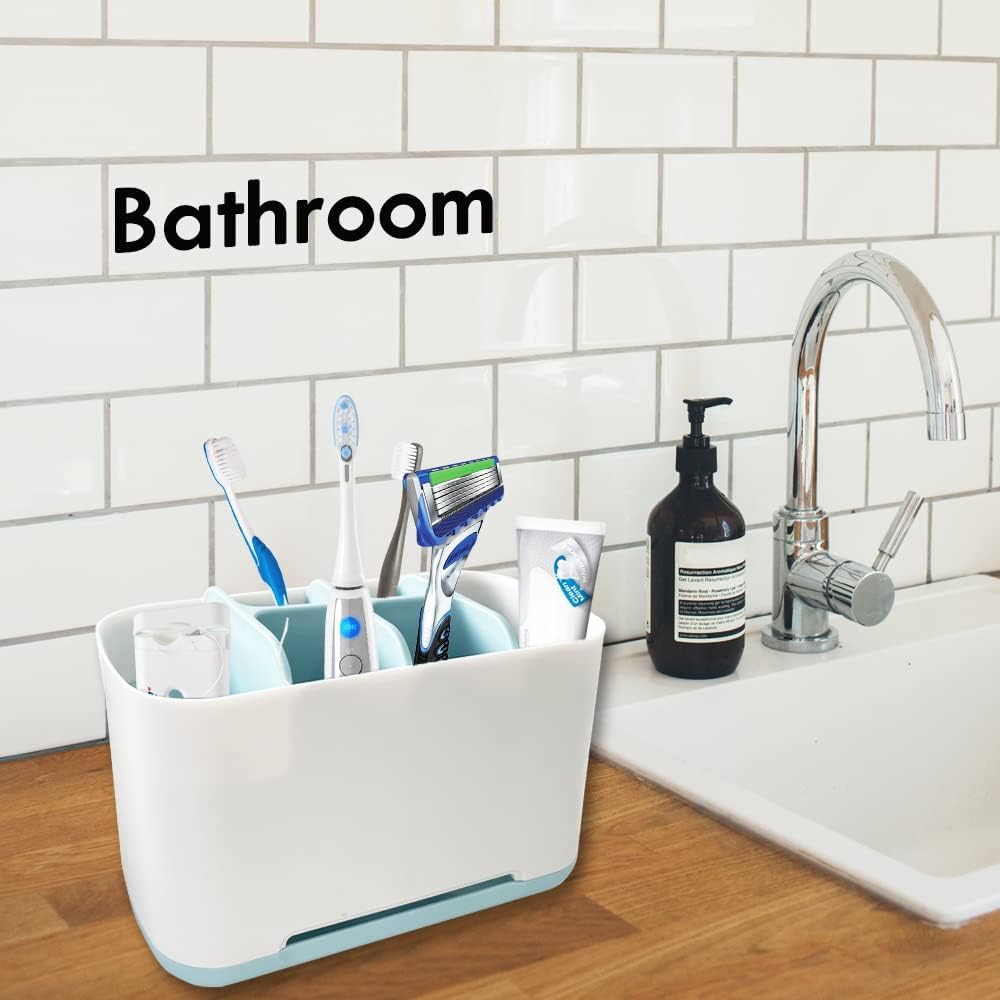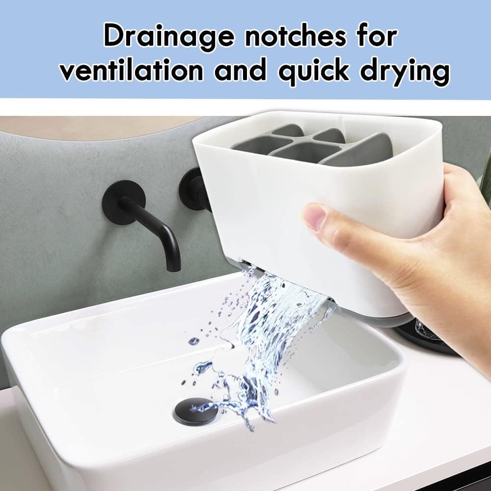 Enough place to hold regular toothbrush, electric toothbrush, toothpaste, shaver, facial cleanser, comb, eyebrow trimmer and so on.