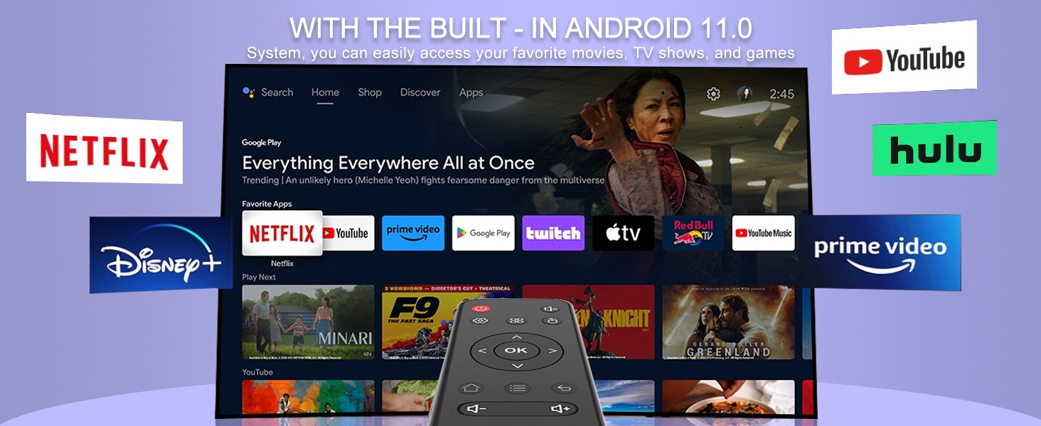 Smart Built-in OS: Stream Netflix, YouTube, and more directly—no external device needed.