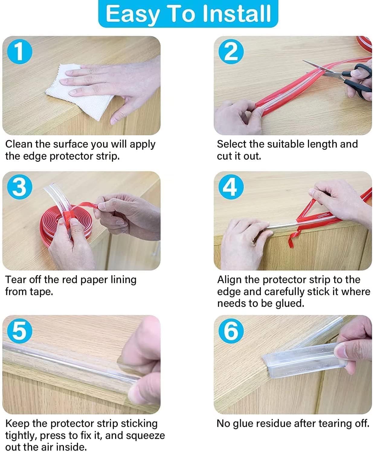 - 𝐄𝐀𝐒𝐘 𝐈𝐍𝐒𝐓𝐀𝐋𝐋𝐀𝐓𝐈𝐎𝐍 & 𝐂𝐋𝐄𝐀𝐍 𝐑𝐄𝐌𝐎𝐕𝐀𝐋: The corner safety for sharp corners strip is pre-taped—just peel and stick. Serves as both a table protector for kids and a bed corners edge protector. Removal is simple with a hairdryer—no damage, no mess, and no residue left behind.