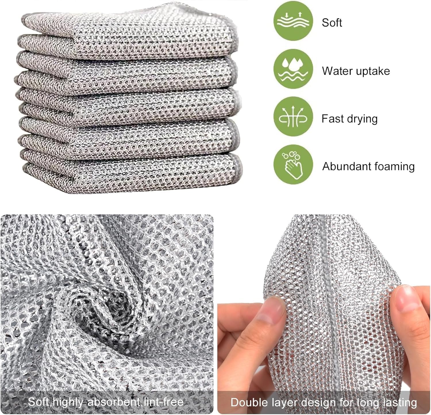 - 【 DOES NOT SCRATCH KITCHEN UTENSILS】Multifunctional wire dishwashing rags for wet and dry, well-made premium microfiber towels, avoids scratches on your valuable cooking utensils, safe to use on any type of surfaces in the kitchen, like counter tops, stovetops, pots and pans, and cutlery.