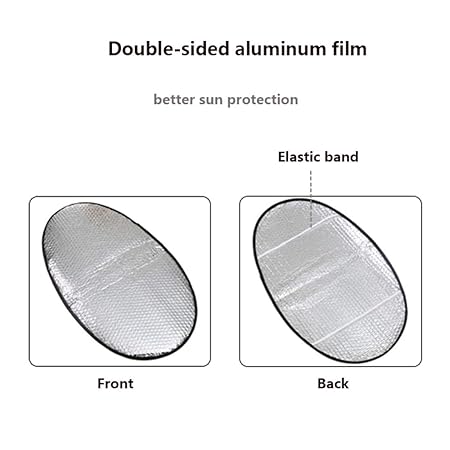 - PRODUCT DETAILS – Product size: 60*35cm | Function: Sun protection, Heat Insulation | Material: Aluminum foil |Color: Silver | Item Weight: 18g