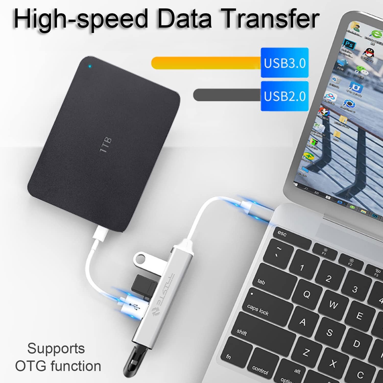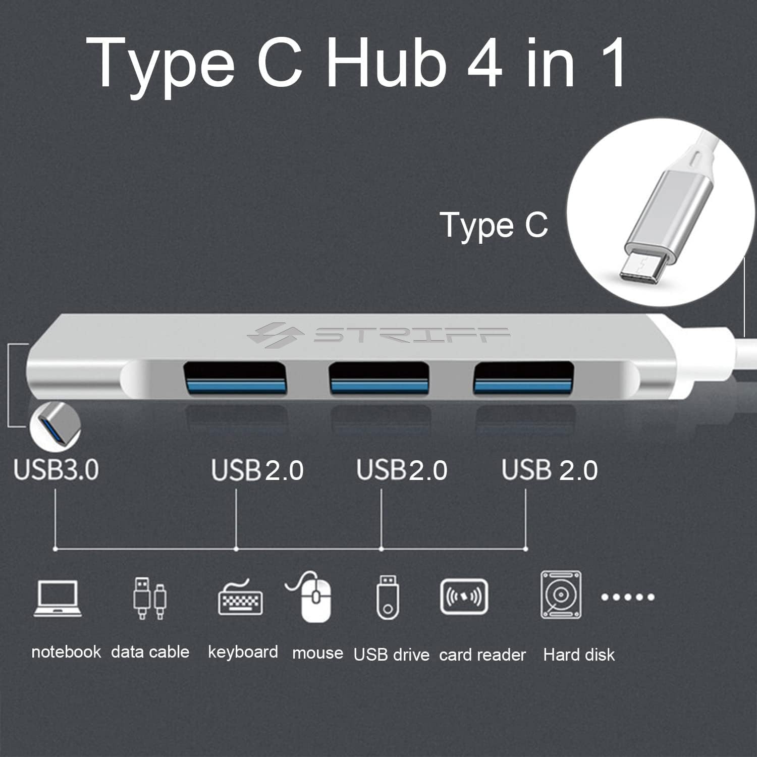 - 4-in-1 Type-C USB Hub, 1 3.0 USB-A port, and 3 2.0 USB-A ports make it easier to connect different devices at the same time.