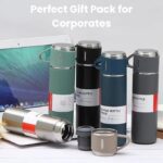 - Vacuum Flask Mug Set: The Thermos Flask Set with Vacuum Insulated Construction includes a package of Double Wall Flask Bottles with a flask lid that can be used as a cup and additionally 2 drinking steel cups are provided on a box packaging. With Press and Pour Lid now you can enjoy a cup of preferred drink with Friends and Family.