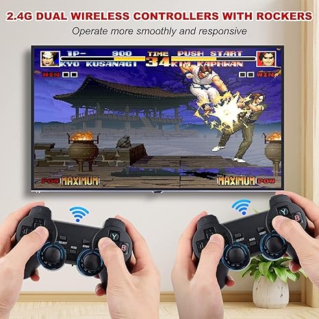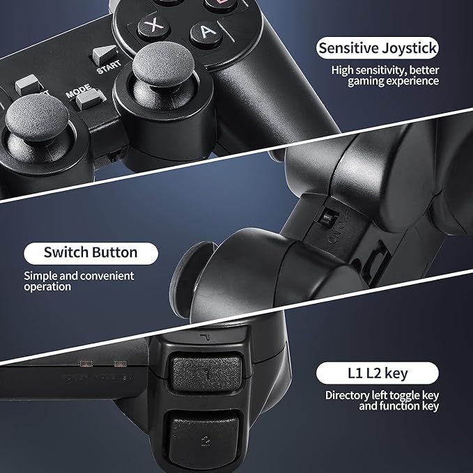 - The console comes with 2 wireless controller adapters that offer stable connections with almost zero latency. 2.4GHz wireless game controller with stable connection, you can play it anywhere in your living room without worrying about being too close to your view.