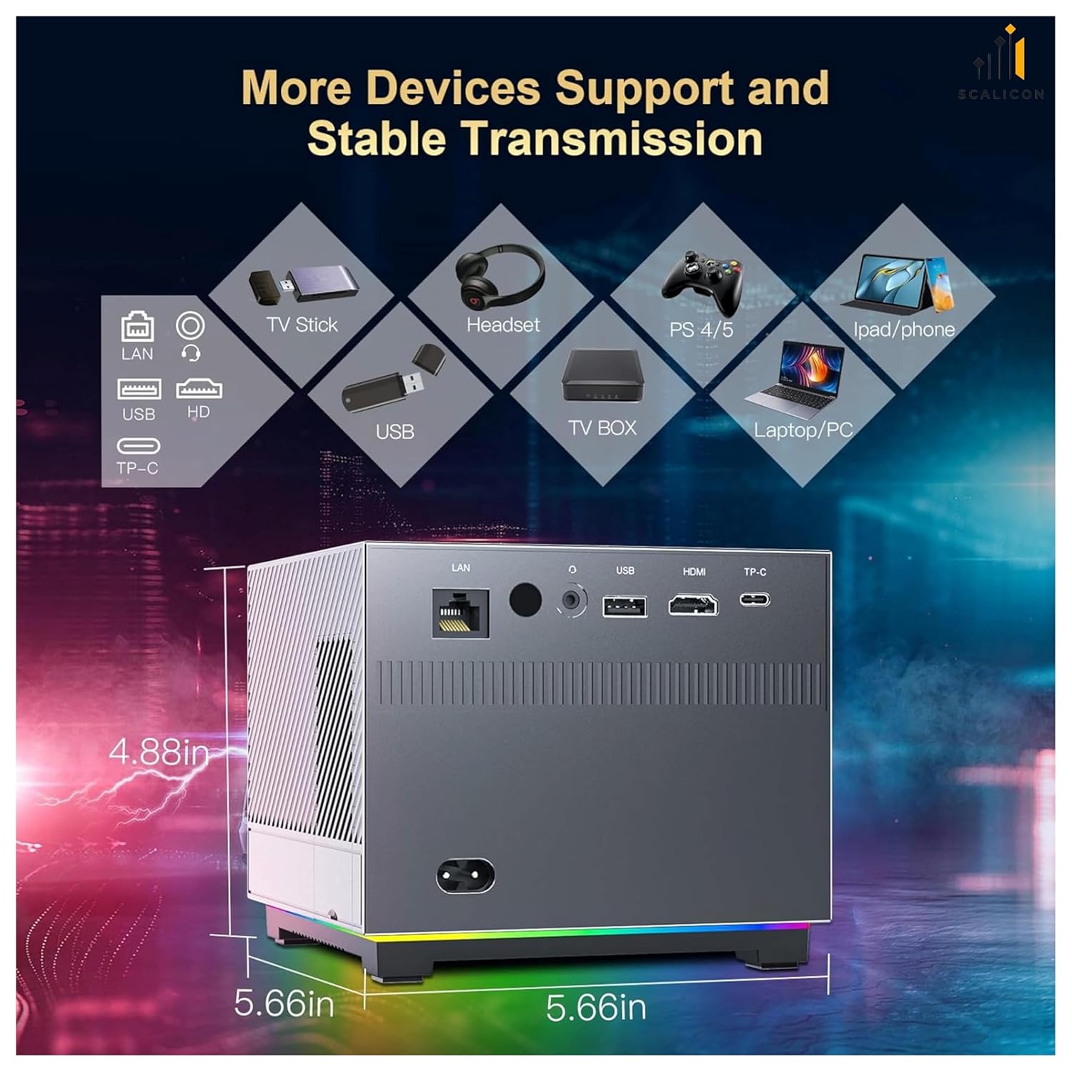 - STYLISH RGB LIGHTING + 16GB STORAGE – Ambient RGB light effects create a cinema-like mood for parties, gaming, or family movie nights. Built-in 16GB memory ensures smoother app performance and faster loading